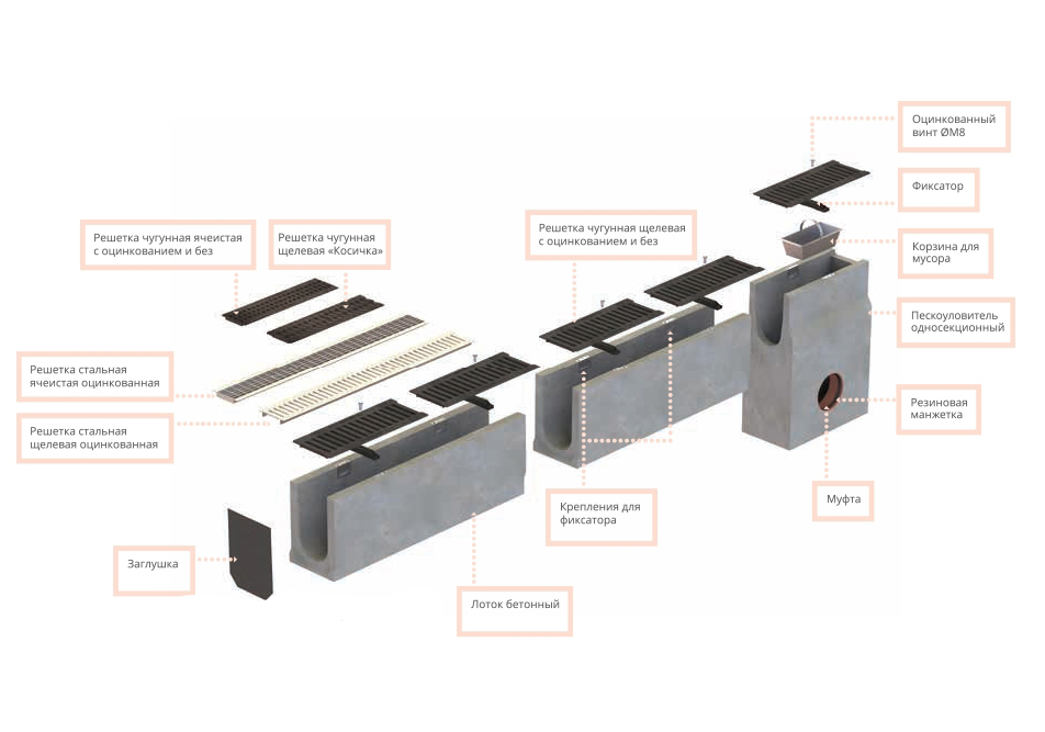 Подходит для отвода дождевой воды с крыш, дорог и площадок. Включает: